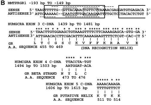 (b) Nucleotide sequence alignments from figure 1a. Above is shown the MMTPRGR1 nucleotide sequence